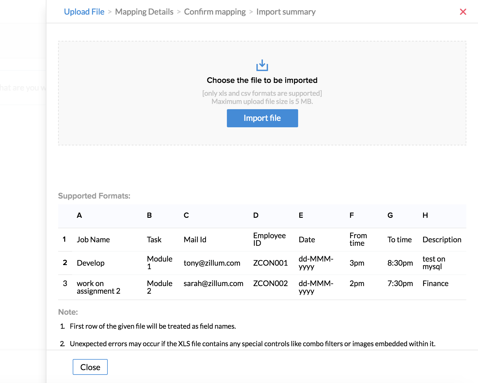 Importing jobs is an easier method of getting all your jobs onto the system. This helps you save time spent by adding each and every job manually. You can also import jobs that are assigned to multiple users. Follow the steps given below.