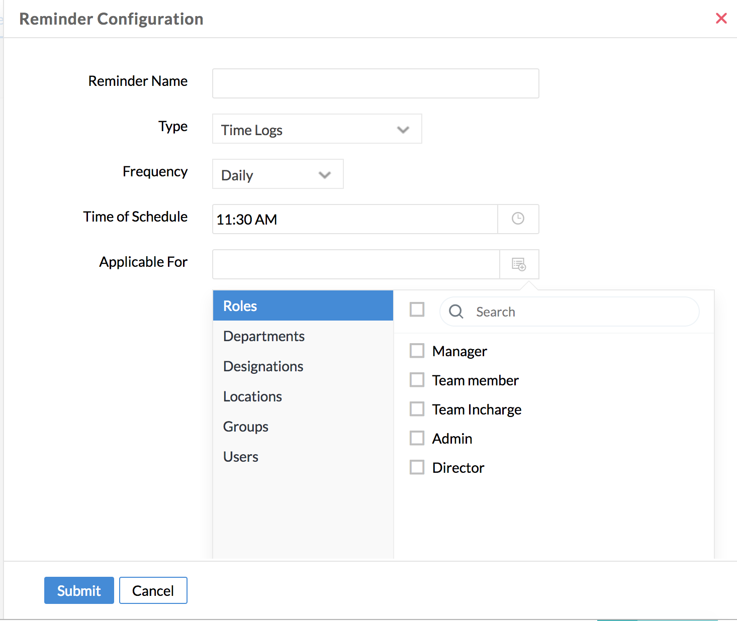 Follow the same steps as you do while configuring General Settings for Time Tracker. The setting defined here will reflect only for the particular Users selected.