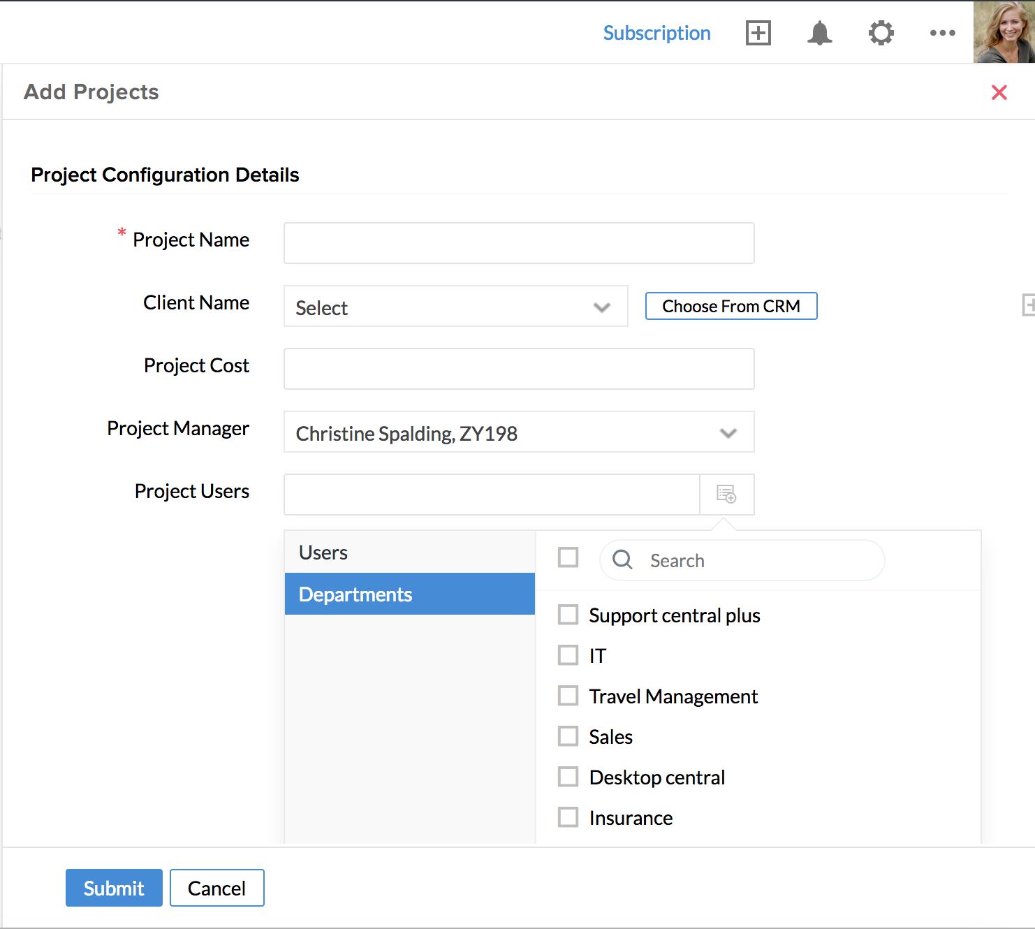 - Select a Project if required .