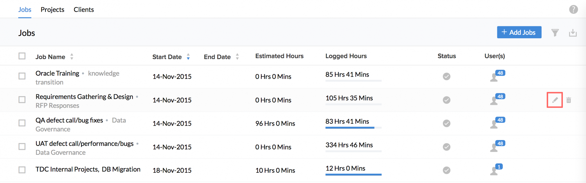 - From your home page, go to Time Tracker > Project/Jobs > Jobs