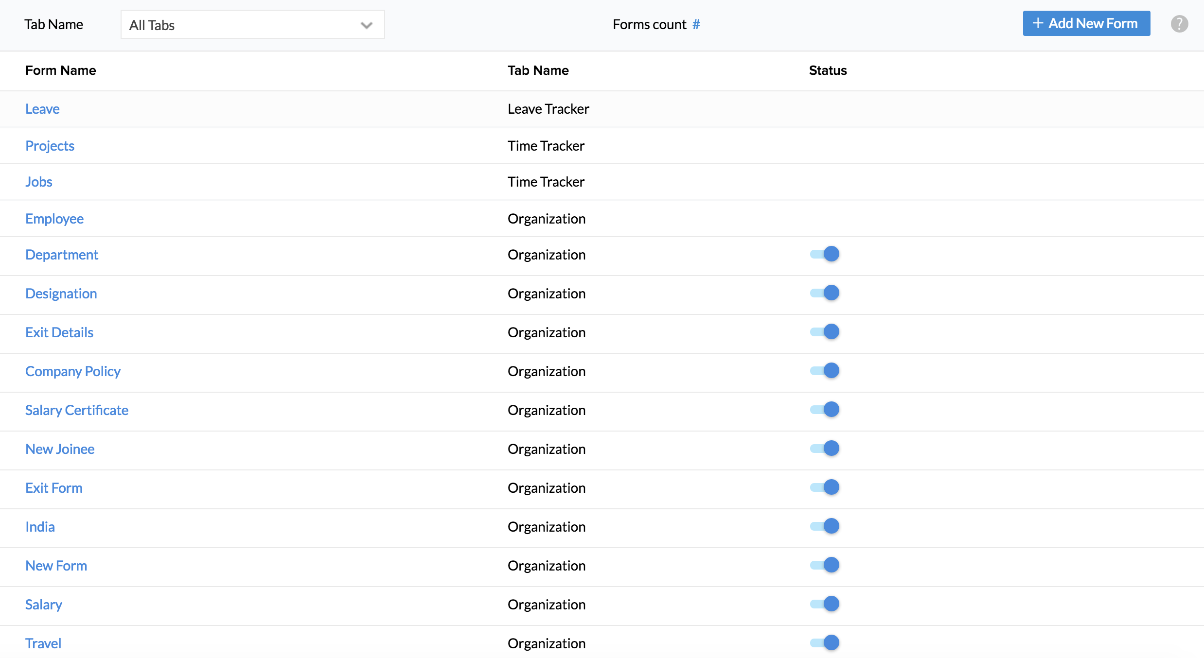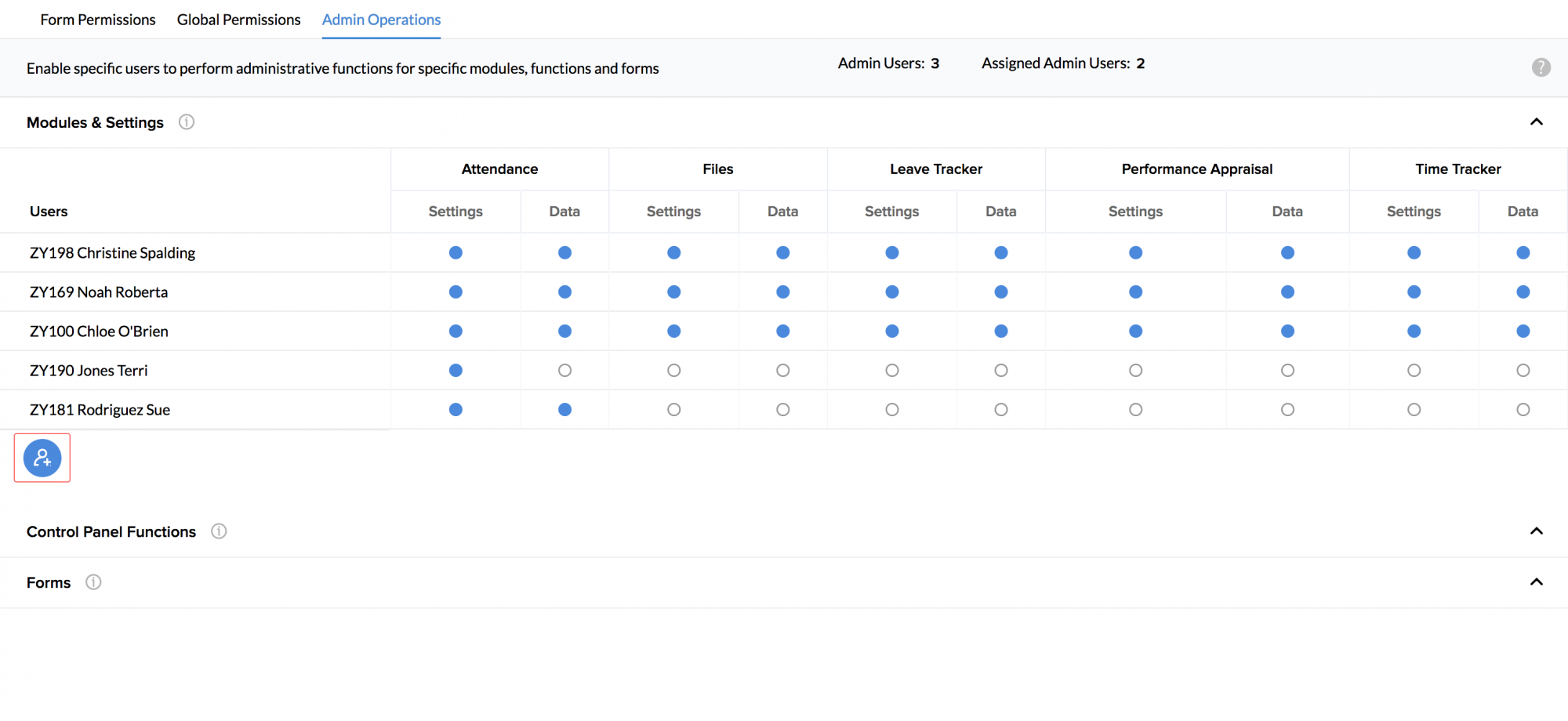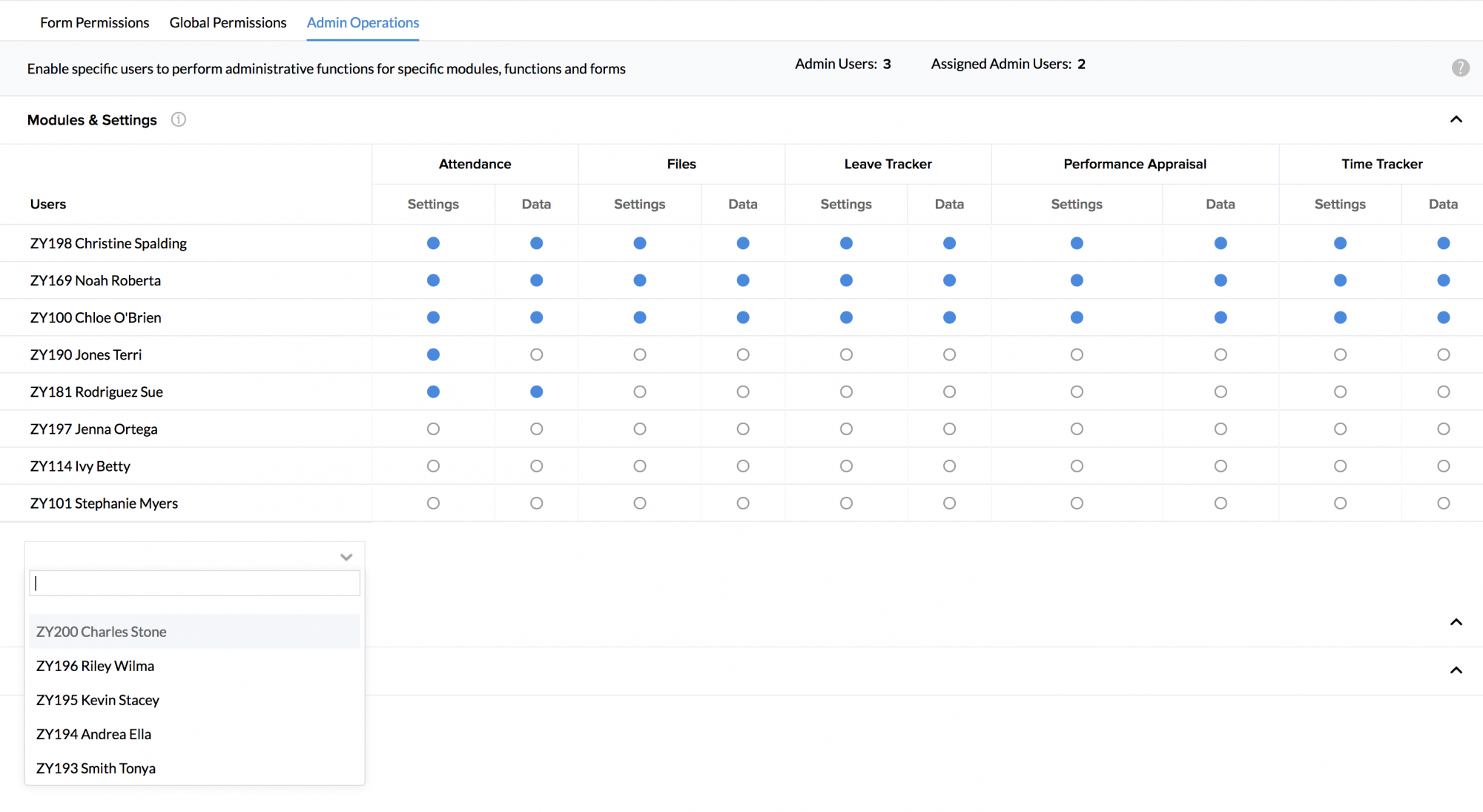 Note: You will be able to see the 'Location Based Admin Permissions' tab only when you select forms which have fields associated with locations.