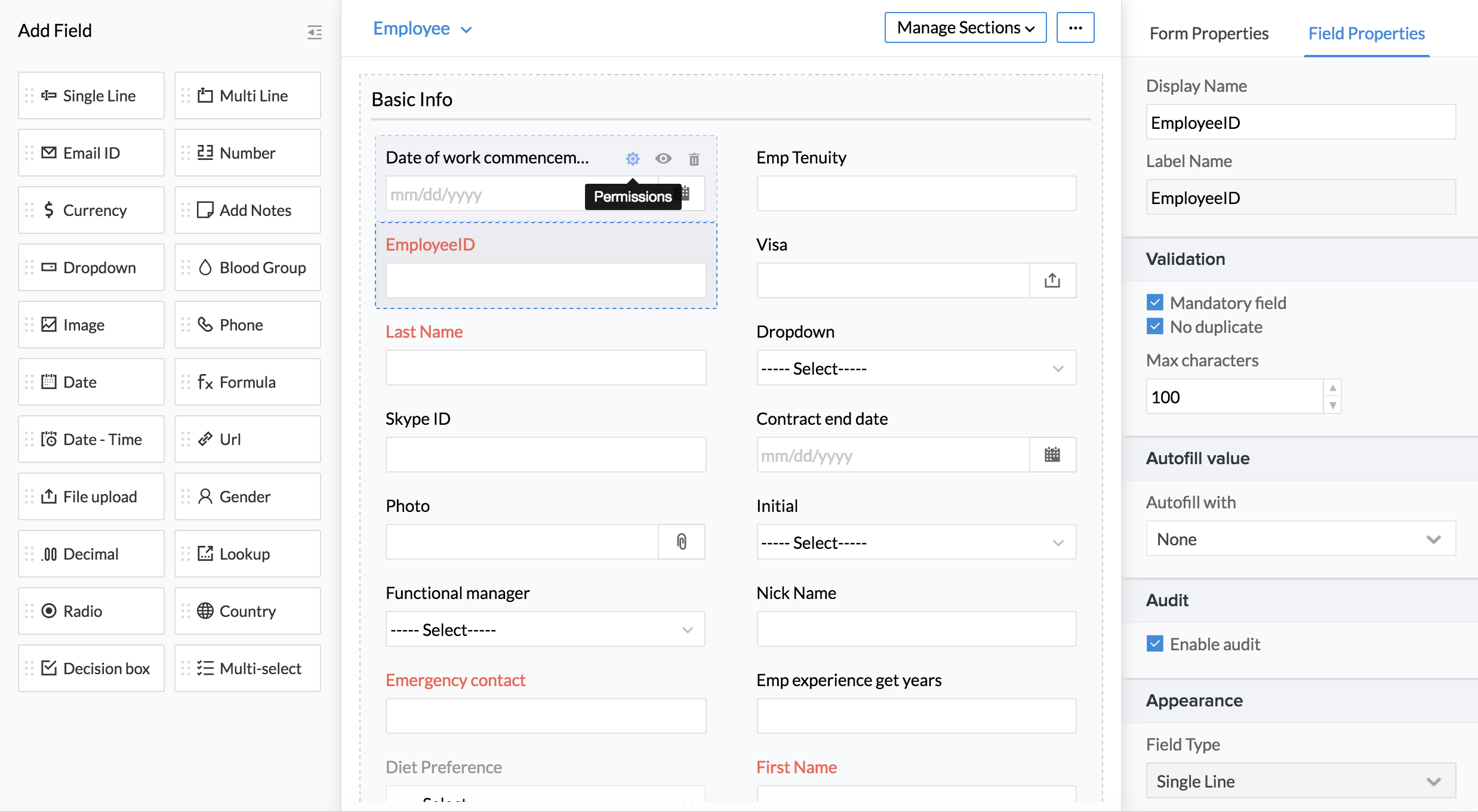 In some forms, there are fields which need permission to be given for more than one role. It is possible to configure permissions for this. Follow the steps given below.