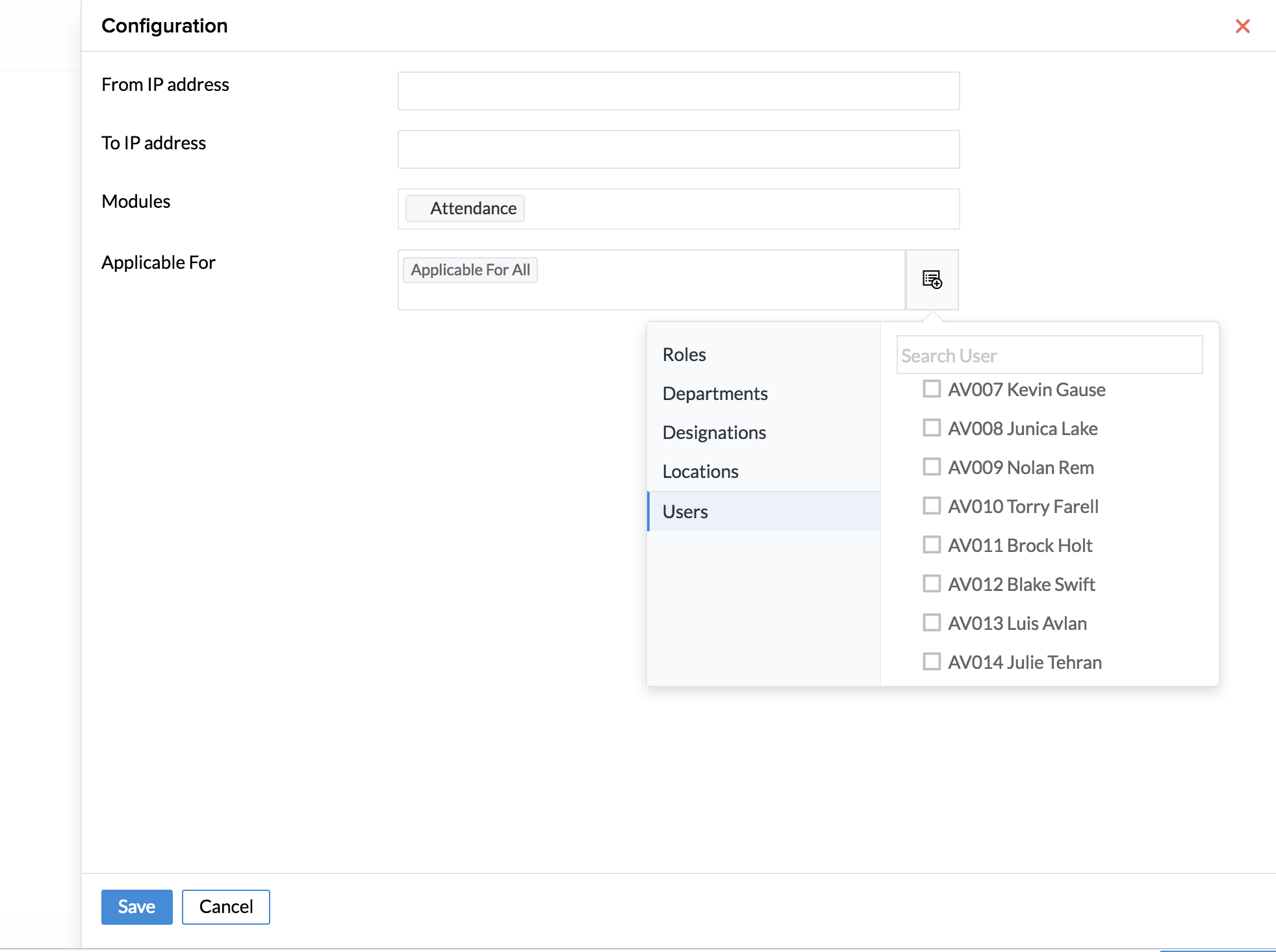 - Under Applicable for select users based on roles, departments, designations, locations,users