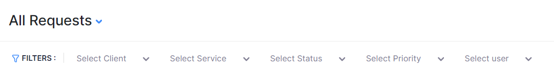 You can filter and view client requests based on fields such as associated client, status of the client request, client request priority and assigned user. Here’s how you can do this: