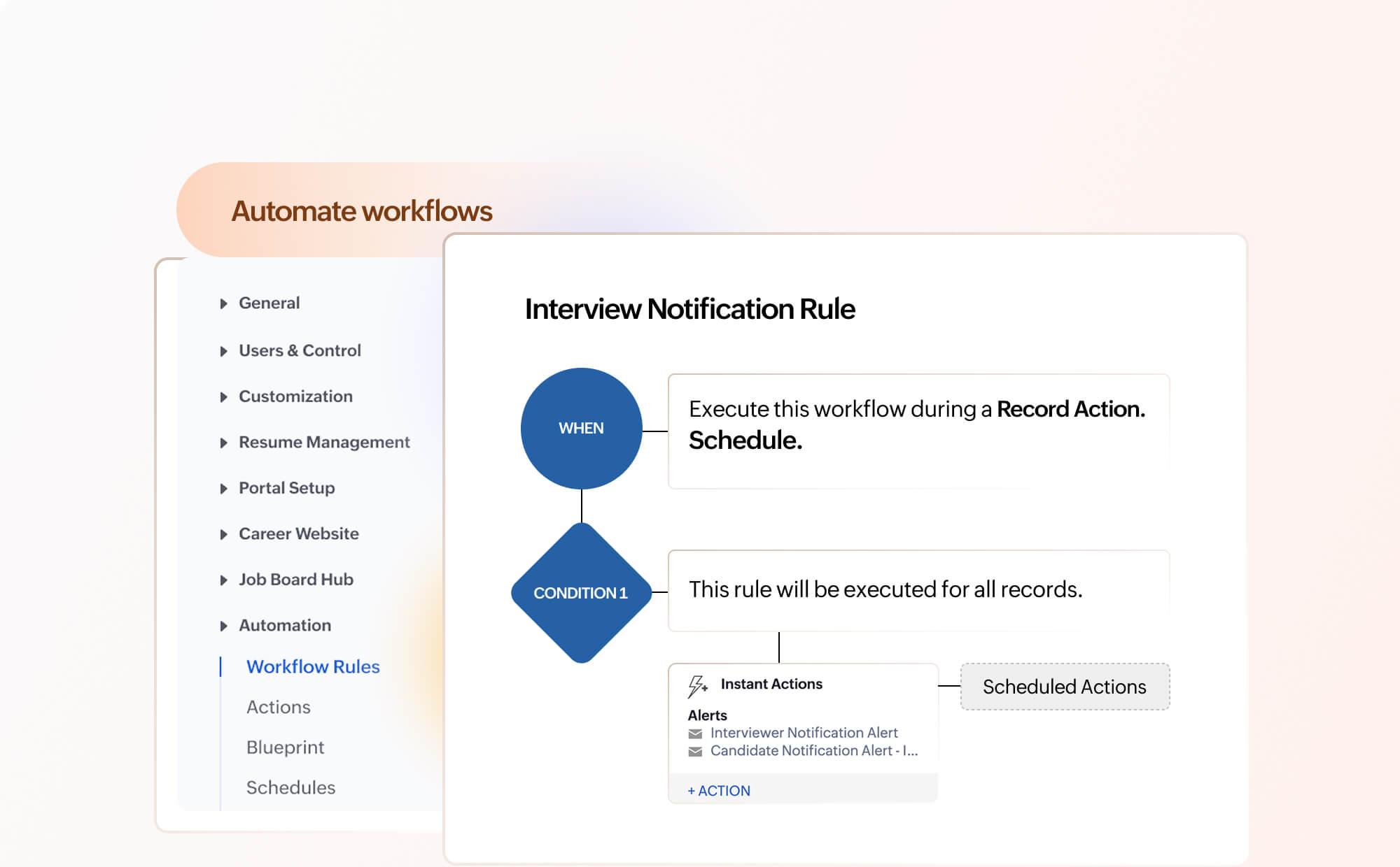 With Blueprints, Workflows, and Custom Functions, you can automate candidate communications, offer approvals, and other critical hiring functions.