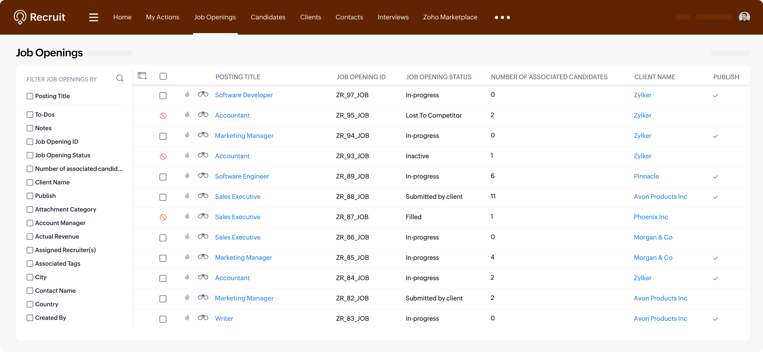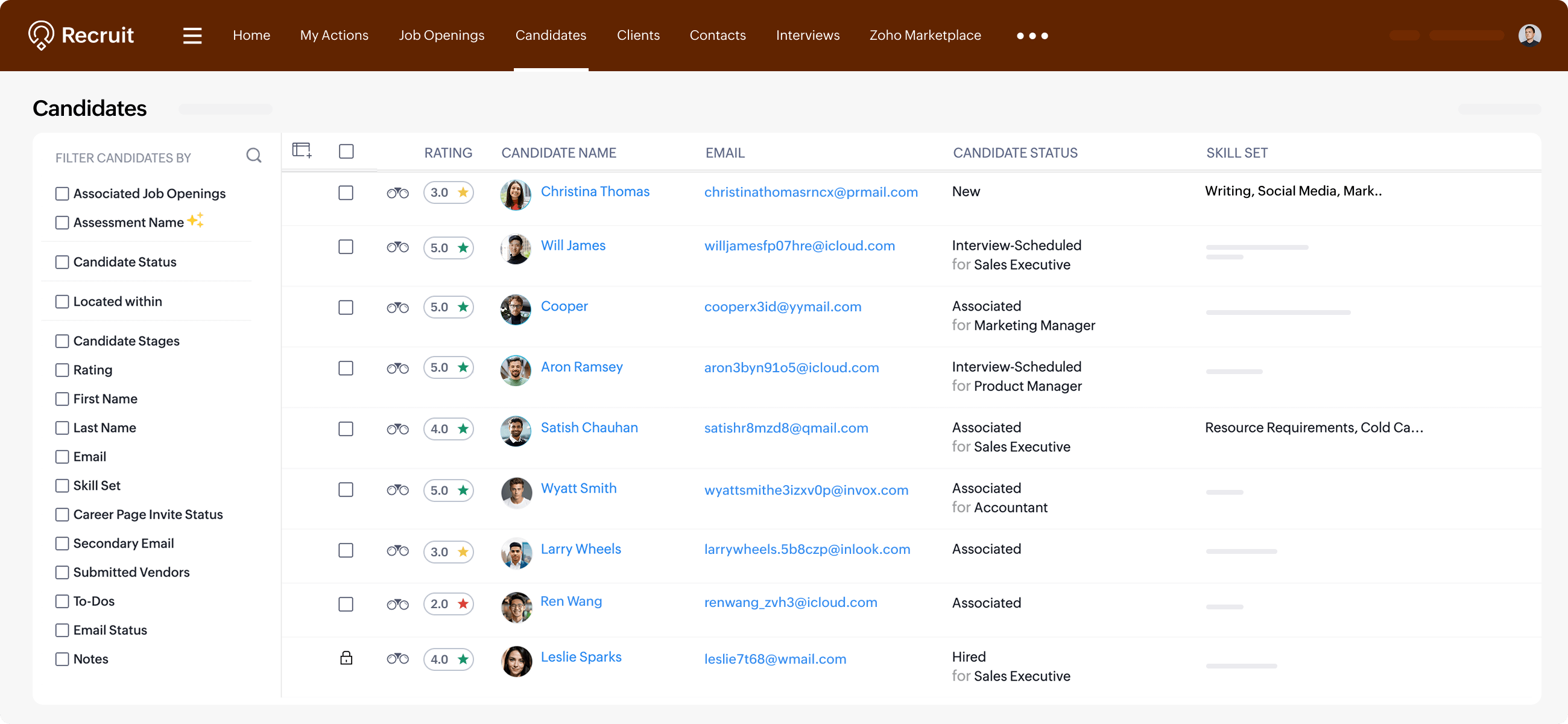 Put simply, the customizability and commitment to going beyond the standard ATS experience sets Zoho Recruit apart. Recruit has been recognized as a leader in the talent acquisition space for providing end-to-end recruitment features that are tailored to each customer's exact needs. Our recruitment CRM functionality has been shown to reduce candidate drop-off rates and pave the way for better employee retention, and our integrations make the entire hiring process seamless no matter what other business apps you use. Read more about how Zoho Recruit has helped businesses around the world.