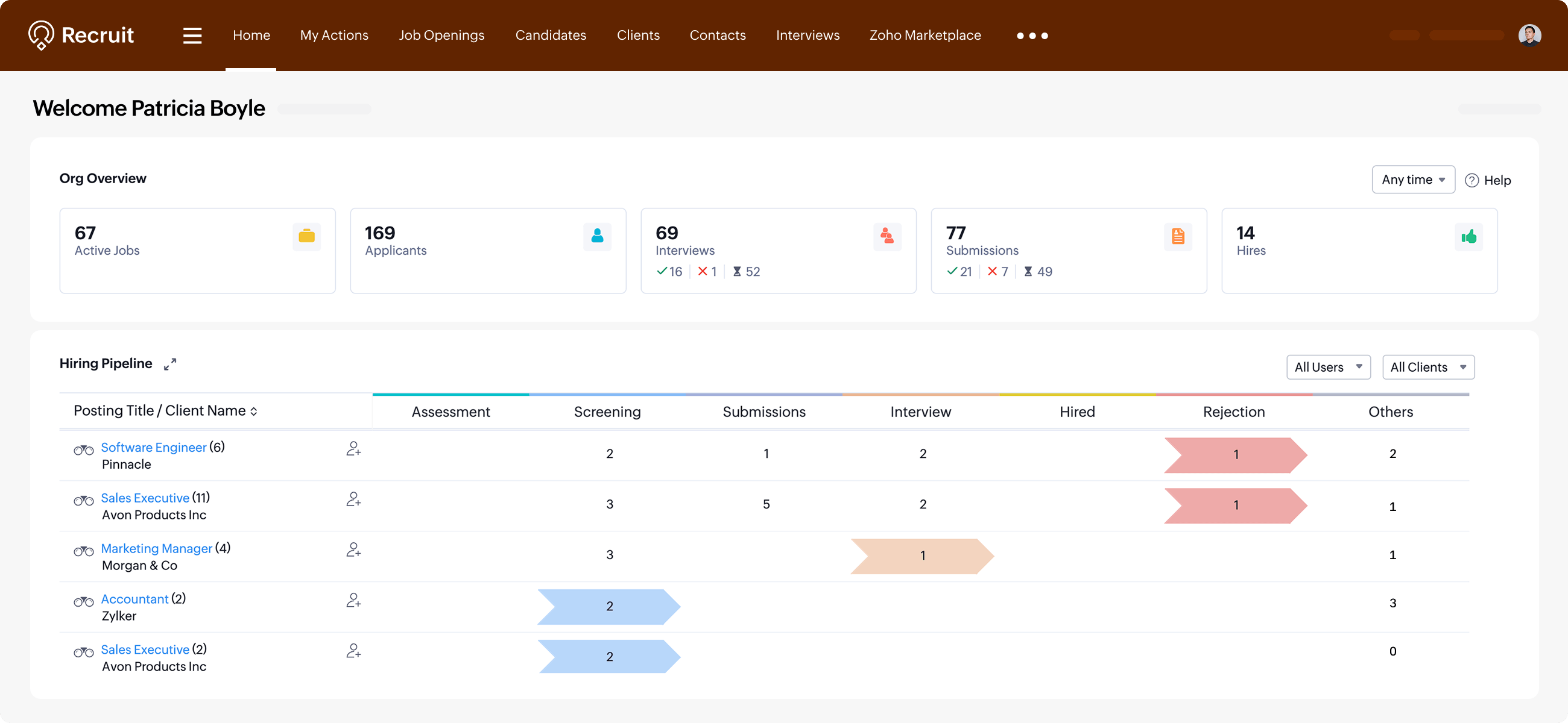 Zoho Recruit has flexible, per-user pricing plans that make it a great option for businesses of any size or industry. Pay for only what you need. For more information, check out our pricing page.