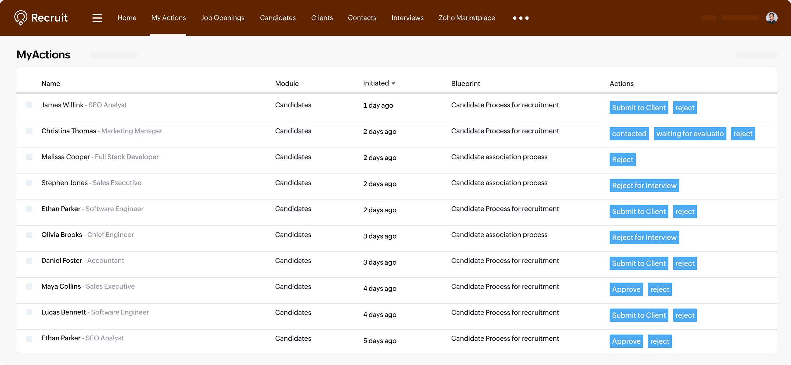 Zoho Recruit comes with both an Applicant Tracking System (ATS) and a Candidate Relationship Management platform, often called a recruitment CRM. While an ATS focuses on faster sourcing and better hiring processes through automated workflows, a recruitment CRM has tools that help you nurture passive job seekers and build relationships with candidates. Combined, they allow you to provide an exceptional candidate experience and better quality placements without sacrificing efficiency or speed.