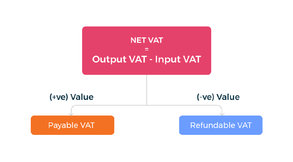 إذا كان المبلغ الإجمالي لضريبة القيمة المضافة المستحقة على شركة ما سلبية لفترة ضريبية معينة ، فسوف يكون العمل مستحقًا للاسترداد.