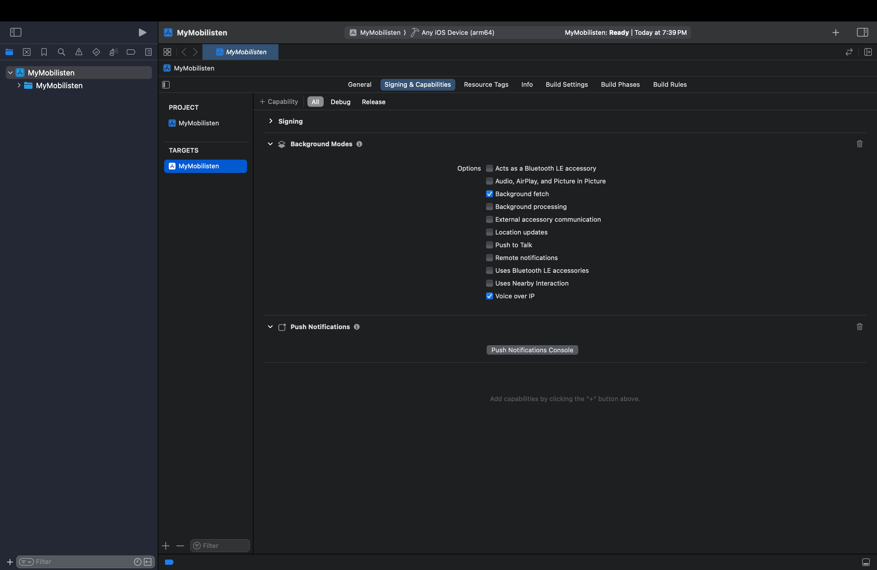 - Voice over IP (VoIP) (under Background Modes > Voice over IP)