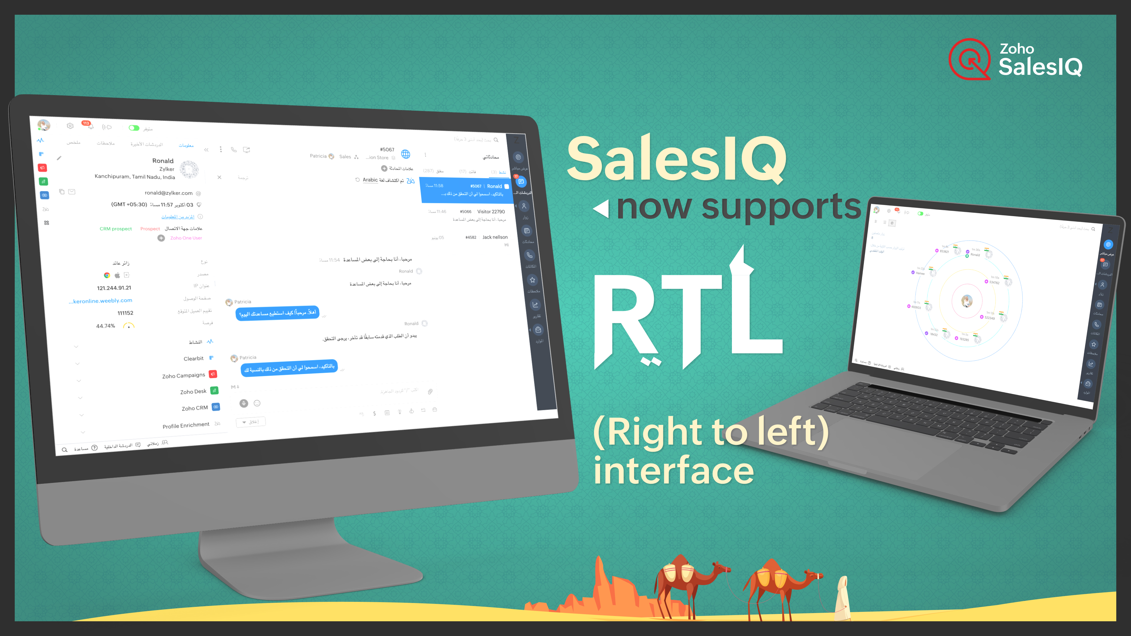 The awaited Right-to-Left (RTL) interface support is now available on SalesIQ. This enhancement will make the SalesIQ experience very much effective for RTL users, i.e., your SalesIQ operators as well as your website visitors. Arabic is currently supported for use in the RTL language category, and there are plans to incorporate additional languages soon.