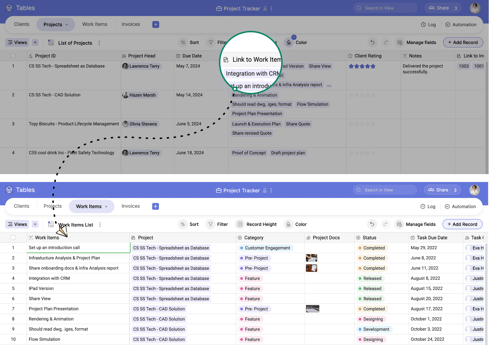 A project tracking tool that has data management at its core will allow you to establish connections and relationships between data, contributing to a well-organized and interconnected database. This capability is particularly valuable, as it ensures that information isn’t duplicated, reducing redundancy and promoting data integrity.