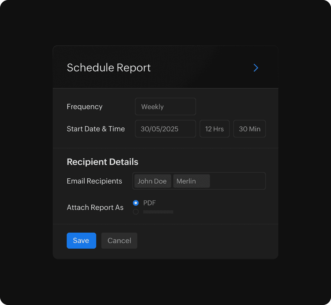 Set up scheduled report emails to deliver up-to-date insights automatically to specific users and stakeholders at chosen intervals. Stay informed without lifting a finger.
