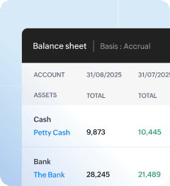Gain real-time insights into your business health. Track receivables, payables, project performance, inventory levels, and tax obligations—all in one place. Zoho Books ensures you stay compliant with financial regulations.