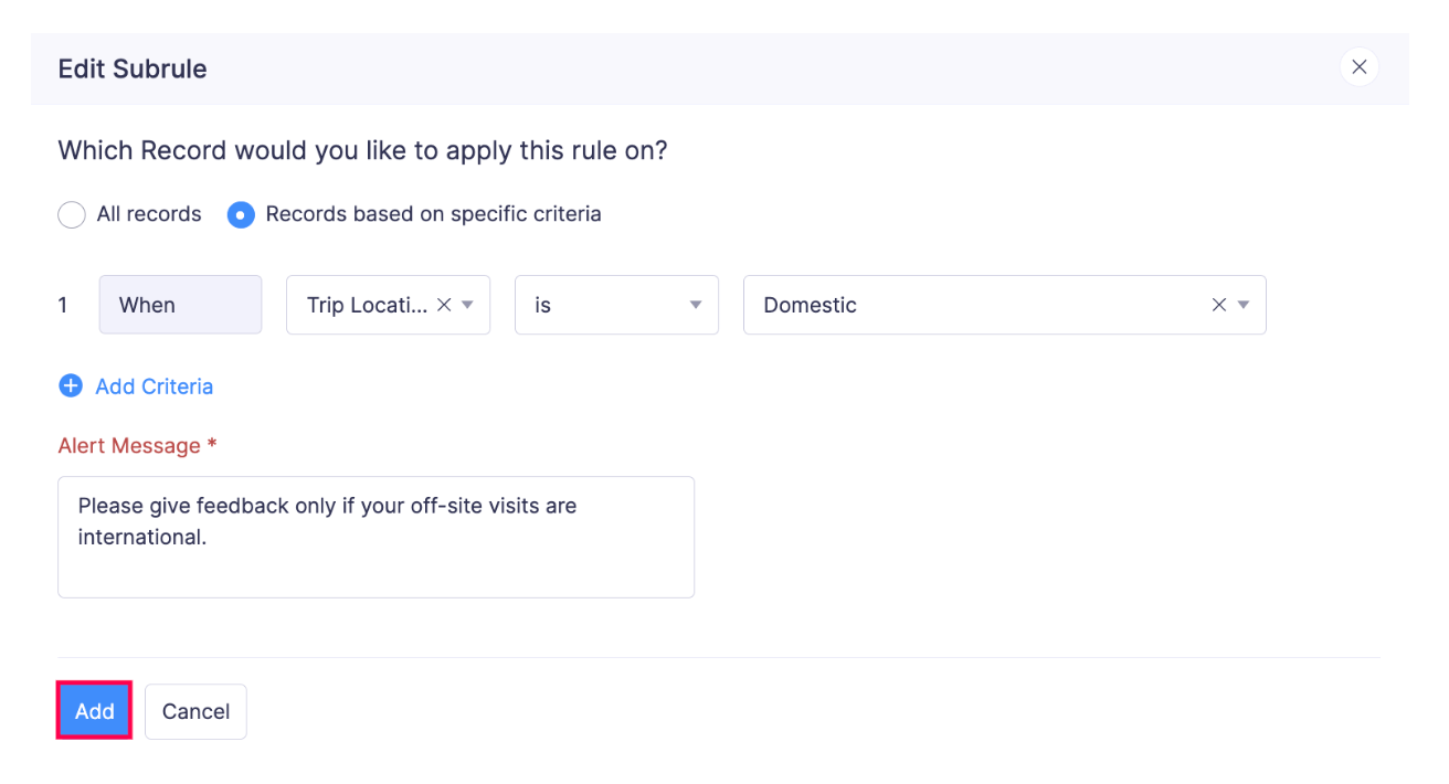 If you would like to include an additional rule to your existing condition, you can add subrules. This is applicable only when youโve chosen to apply the rule to transactions based on specific criteria. Here’s how to add subrules to the validation rules: