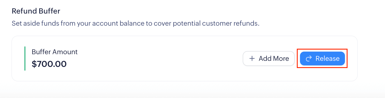 The amount will be set aside from your balance towards the refund buffer. You can allocate additional funds as well later by clicking Add More.