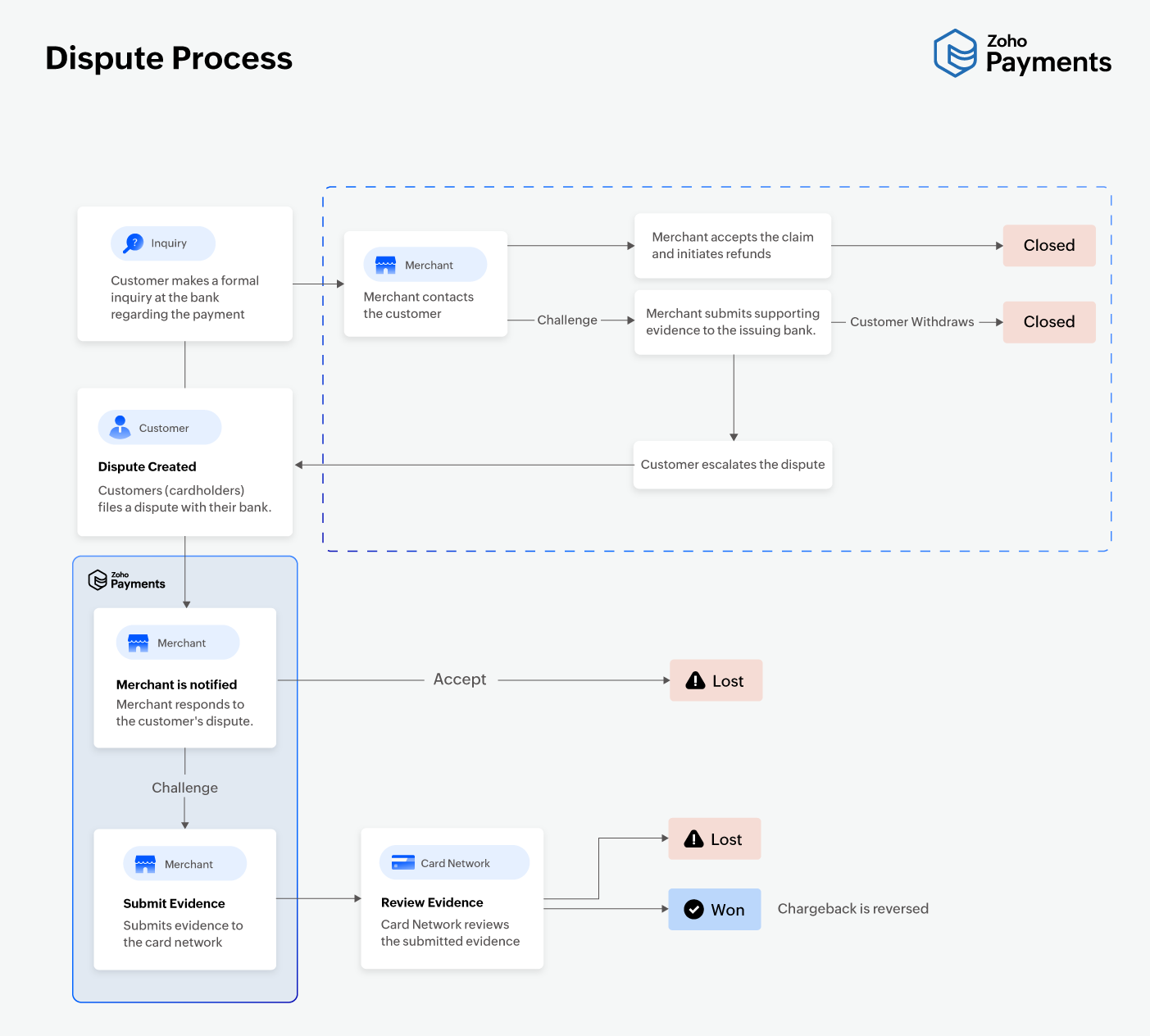 Challenge: Challenge a customer’s dispute by submitting evidence against their claim within a specified period.