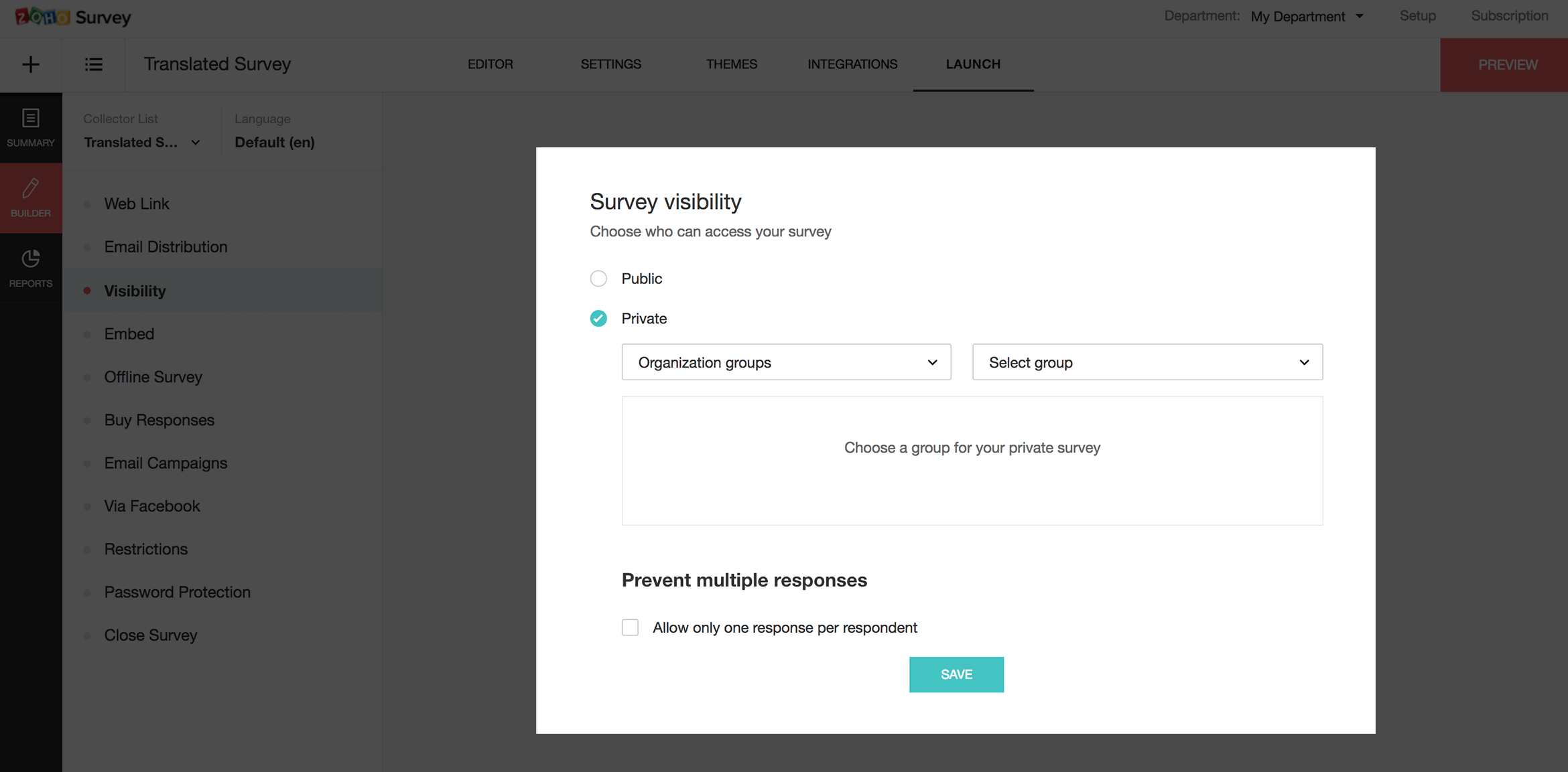 Hạn chế truy cập vào khảo sát của bạn cho một nhóm riêng tư. Chỉ những người bạn chọn mới có thể xem và trả lời khảo sát. Báo cáo chi tiết sẽ cho bạn biết ai, khi nào và cách thức người trả lời đã trả lời câu hỏi của bạn.