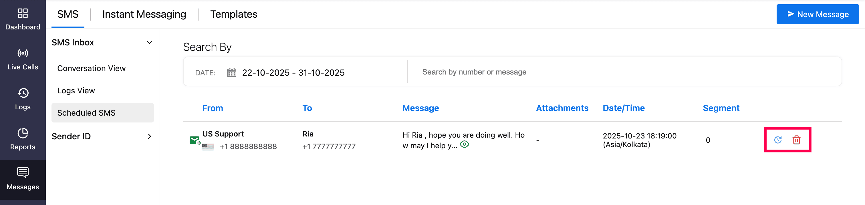 Delete: Click the Delete icon to permanently delete a scheduled message.