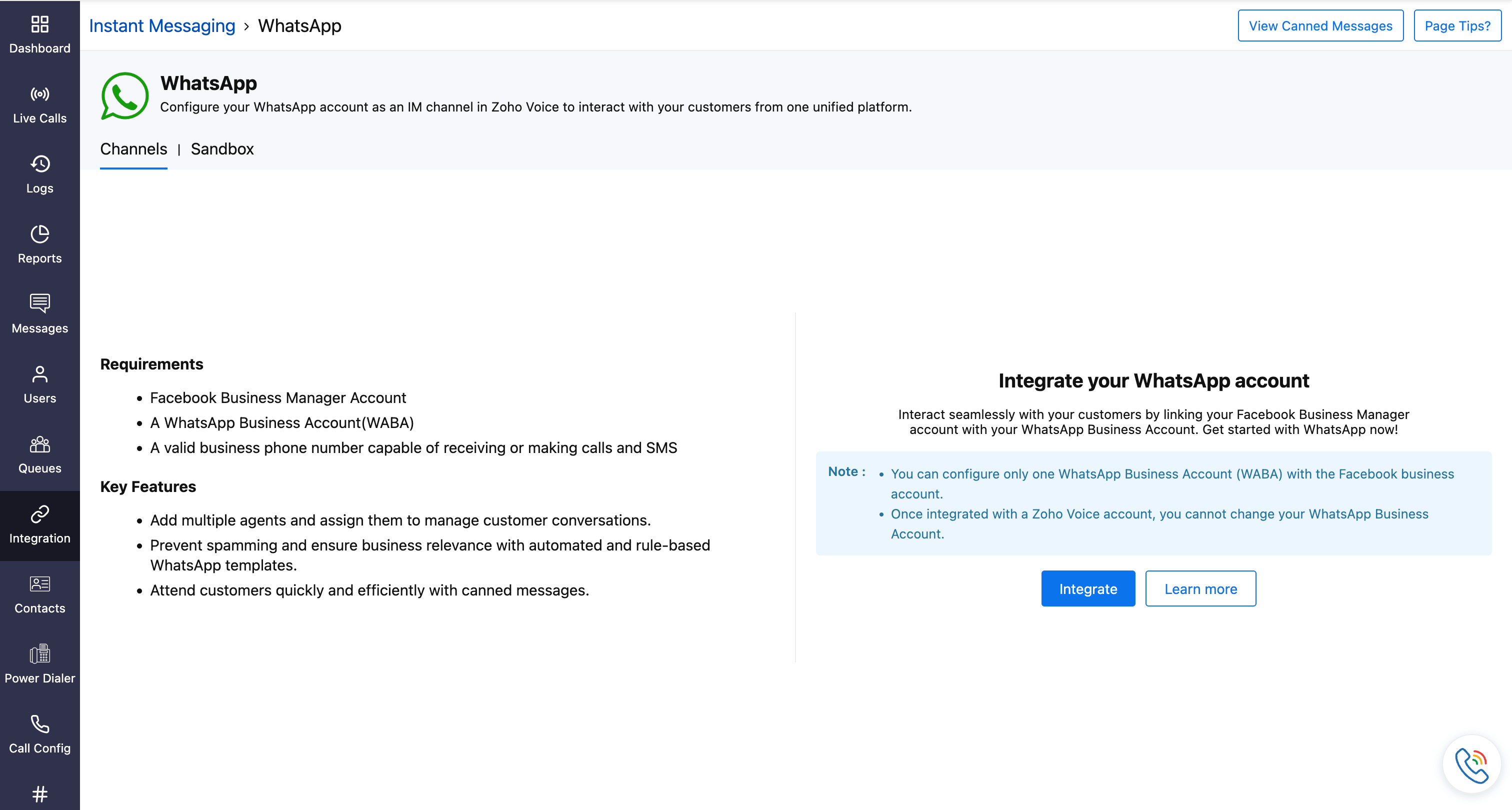 Integrate your WhatsApp account with Zoho Voice