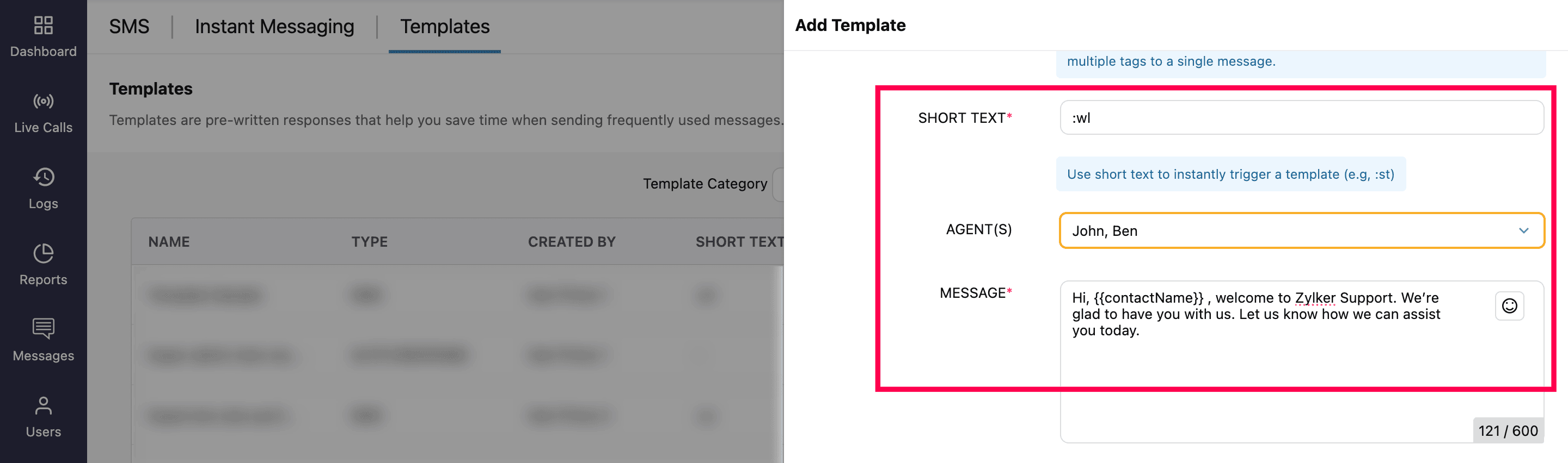 Example: “Hi {{contactName}}, welcome to Zylker Support. We’re glad to have you with us. Let us know how we can assist you today.”