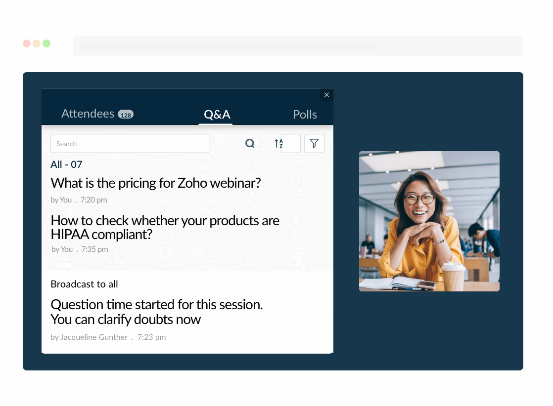 Try Zoho WebinarWhy should you choose Zoho Webinar for online courses and workshops?
