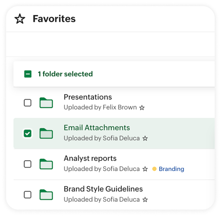 No more playing hide-and-seek with your files. WorkDrive's global search helps you spot any file instantly, even if it isn't intuitively named. WorkDrive not only searches by a file's name, it also brings up every file related to your search by content.