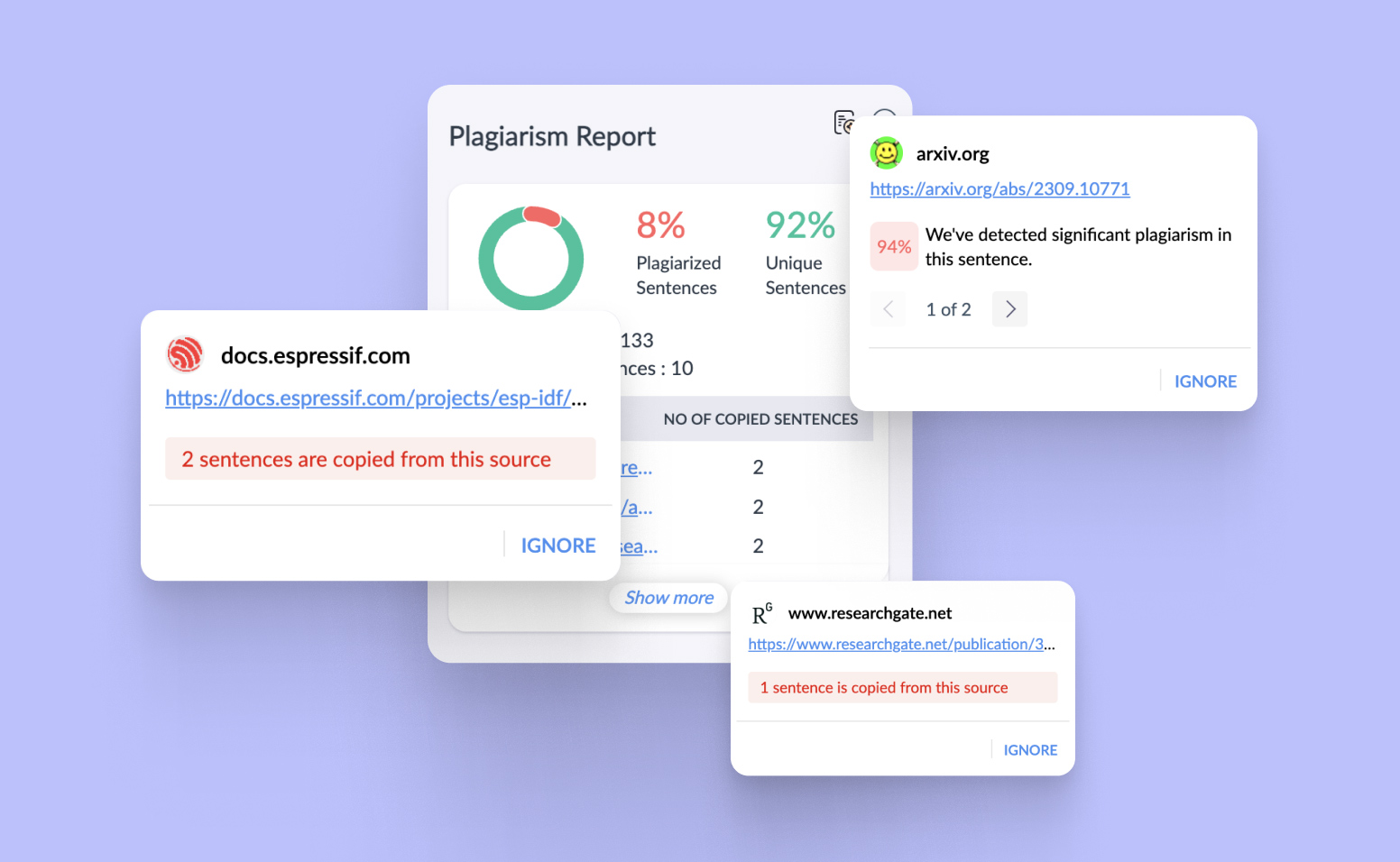 - Overall plagiarism percentage
