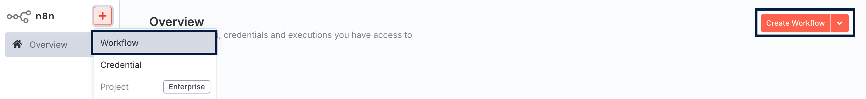 2. Click the down-arrow next to the Create workflow button and click Create credentials.