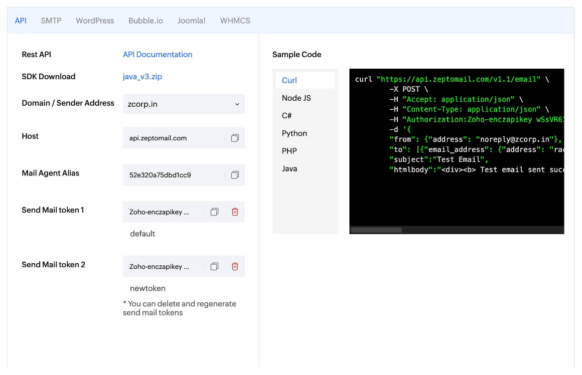 Connect ZeptoMail to your business with its user-friendly interface.